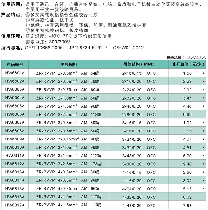 ZR-RVVP铜芯聚氯乙烯绝缘聚氯乙烯护套铝镁丝屏蔽软电缆