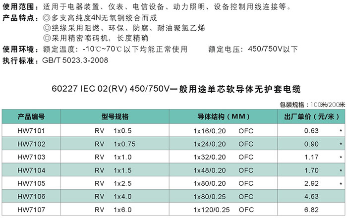 RV铜芯聚氯乙烯绝缘安装用软电线