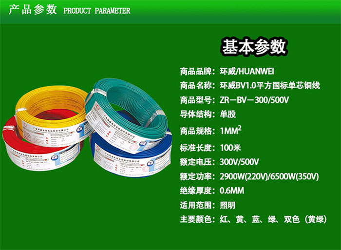 环威BV1.0平方国标单芯铜线